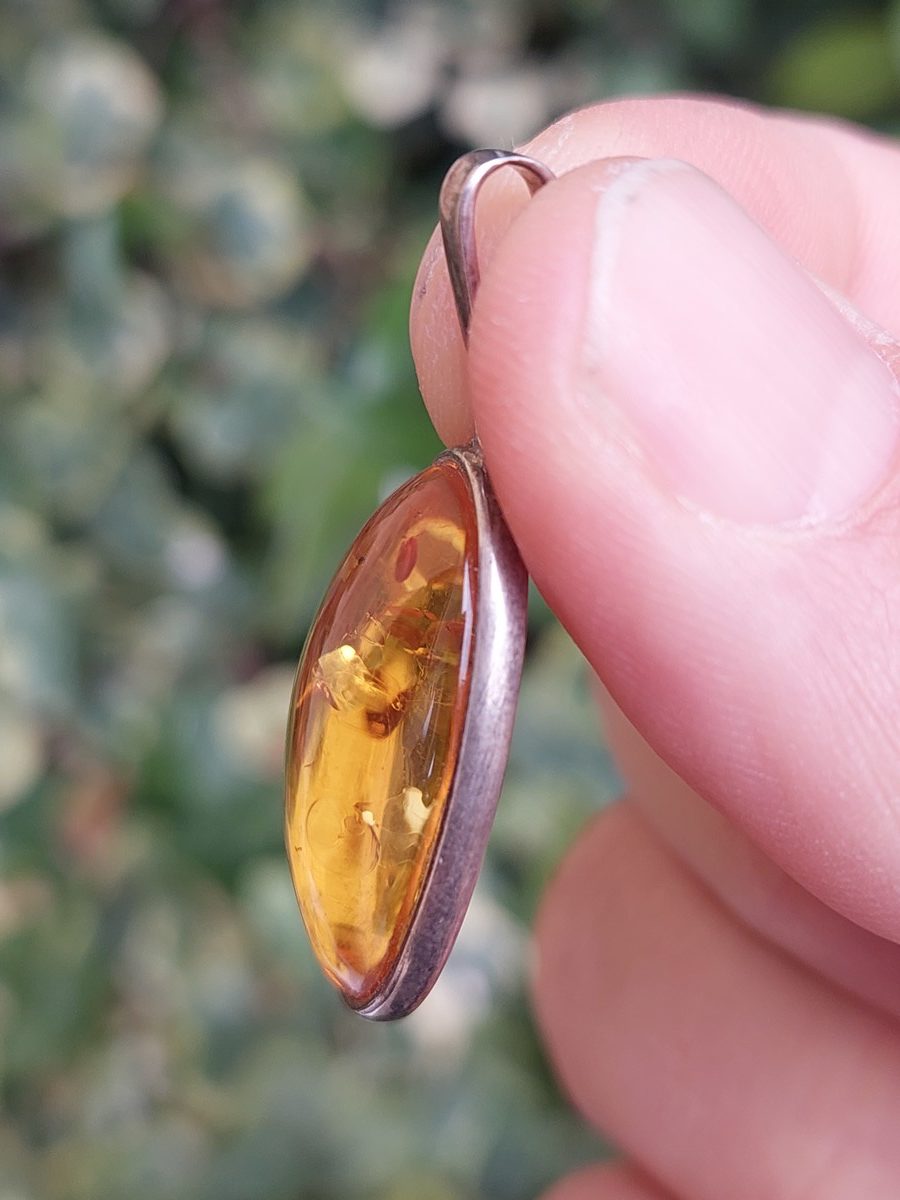 Pendentif en Ambre serti de 2.5 cm de hauteur sur 1.8 cm de largeur environ